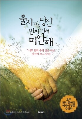 [울지마 당신, 먼저 가서 미안해]는 헌신적인 아버지이자 다정한 남편 도미니크를 44세라는 젊은 나이에 일종의 복합 치매라는 불치병으로 잃은 저자가 그의 발병과 진단, 치료 과정을 돌아보며 가족과 이웃과 친구들이 어떻게 그 과정을 겪어내고 위로하며 감내했는지를 담담히 기록한 내용을 담고 있다. 2013년도 호주 핀치 문학상 수상작으로 출간 후 독자들의 열렬한 찬사와 추천이 쏟아졌고, 2014년 미국에서도 출간돼 많은 독자들을 감동시키고 호평을 이끌어냈다.