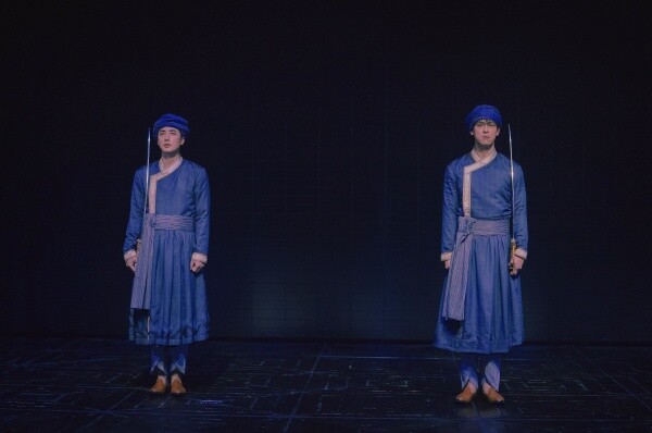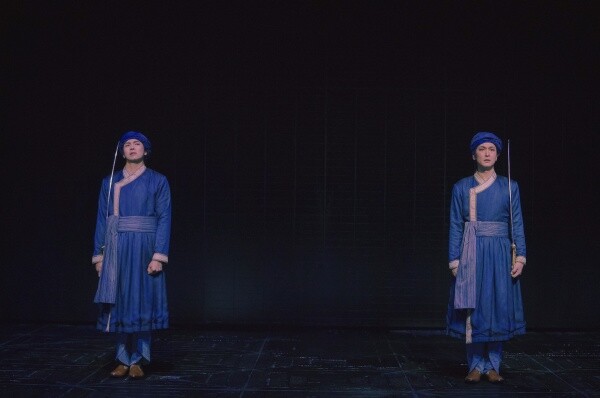2017년 초연이 미국에서 올라왔던 에이미 모튼 연출의 아틀란틱 씨어터 컴퍼니 버전을 차용했다면, 2025년에 LG아트센터 서울에서 재공연되는 <타지마할의 근위병>은 이전에 없던 새로운 옷을 입었다. 이번 공연을 맡은 신유청 연출은 과감하게 무대를 비우고, 광활한 어둠 속에 배우 두 명을 세워두었다. 언뜻 너무 커 보이는 극장은 연극이 시작하자마자 공간이 주는 힘을 한껏 발휘하는데, 높은 천장 아래서 바불이 “우리가 얼마나 작은 존재인지”를 이야기할 때 관객은 그 삶의 크기를 같이 가늠해 볼 수 있고, 휴마윤의 목소리가 벽에 부딪혀 울리면 그가 느끼는 공포가 극대화되어 다가온다.